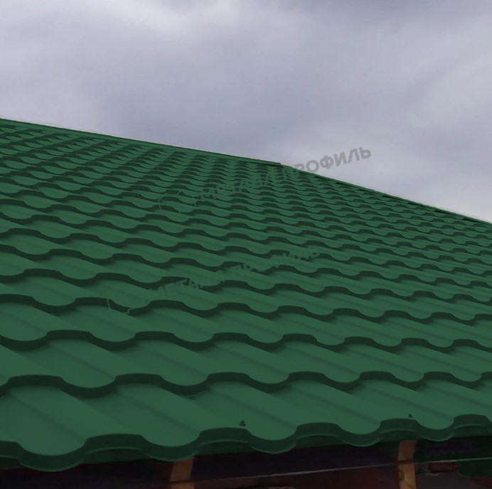 Металлочерепица Монтекристо-S 0,5 NormanMP в цвете RAL 6005 Зеленый мох от компании Металл-Профиль представляет собой надежный кровельный материал, сочетающий эстетику натуральной черепицы с прочностью металла. Этот продукт идеален для современных домов, обеспечивая долговечность и привлекательный внешний вид в зеленых тонах, гармонирующих с природой.