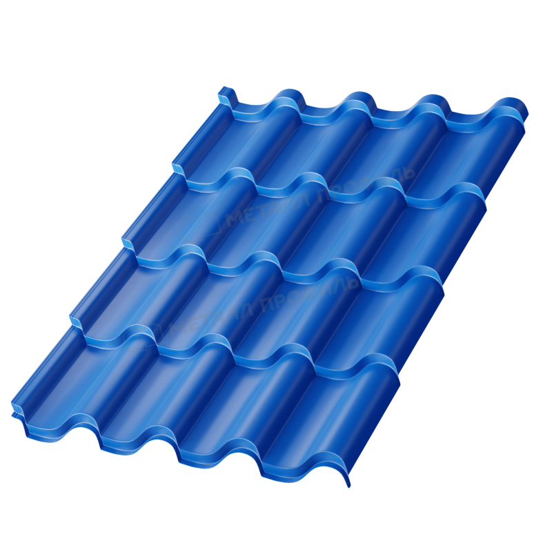 Металлочерепица Монтерроса-SL с покрытием PURMAN® в насыщенном синем цвете RAL 5005 представляет собой надежный кровельный материал толщиной 0,5 мм от компании Металл-Профиль. Она сочетает эстетику классической черепицы с прочностью металла, обеспечивая долговечность и стиль для вашего дома.