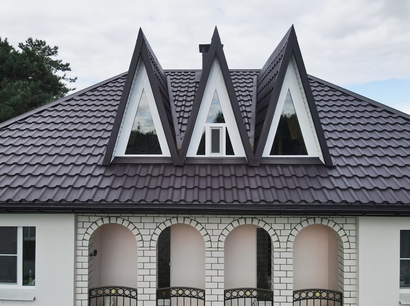 Одним из ключевых преимуществ является сочетание доступной цены и высокой долговечности — срок службы превышает 30 лет. В отличие от керамической черепицы, этот материал легче, что снижает нагрузку на стропильную систему и упрощает транспортировку. Матовая поверхность устойчива к загрязнениям, а цвет RAL 8017 добавляет теплоты фасаду. Преимущество в монтаже: листы легко режутся и крепятся, не требуя специального оборудования. Экологичность и отсутствие токсичных выделений делают его безопасным для жилых объектов.