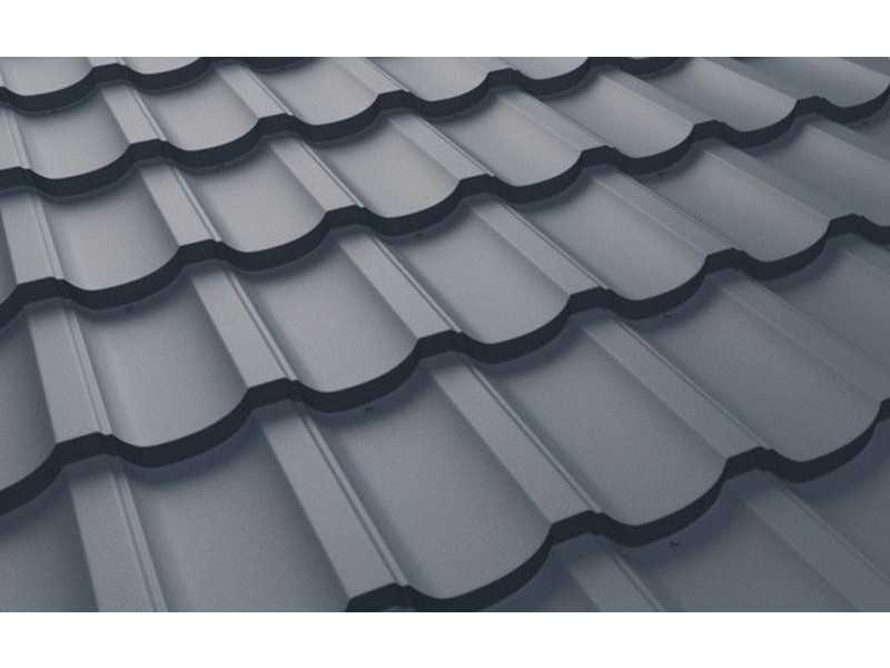 Металлочерепица в цвете серый графит представляет собой надежный кровельный материал с современным покрытием и профилем, подходящим для различных типов крыш. Она сочетает в себе прочность металла, эстетичный вид и долговечность, обеспечивая защиту от атмосферных воздействий.
