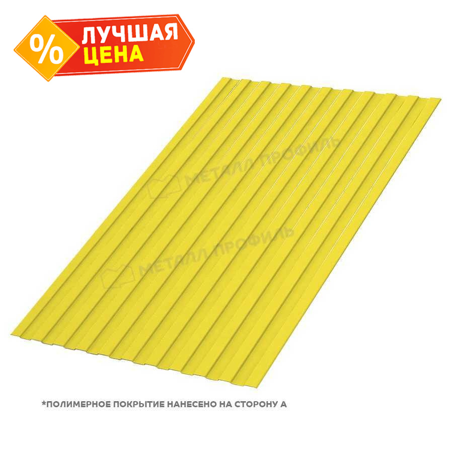 Профлист С-8 с толщиной 0,5 мм и покрытием из полиэстера в цвете RAL 1018 представляет собой надежный материал для ограждений, фасадов и кровли. Он сочетает прочность металла с эстетичным желтым оттенком, имитирующим цинк, и обеспечивает долговечность в различных условиях эксплуатации.