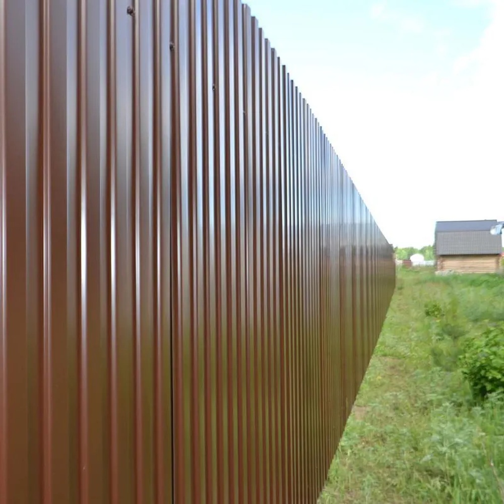 Подходит для заборов, облицовки зданий и временных сооружений. Легко режется и крепится саморезами.